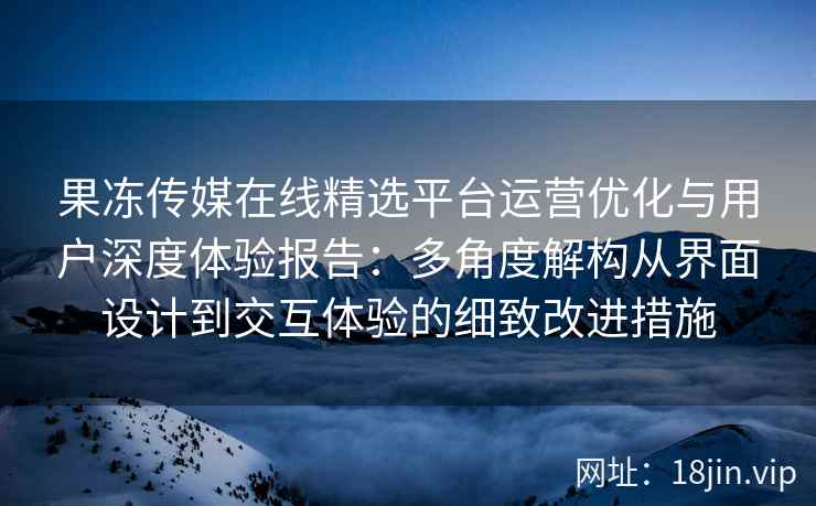 果冻传媒在线精选平台运营优化与用户深度体验报告:多角度解构从界面设计到交互体验的细致改进措施